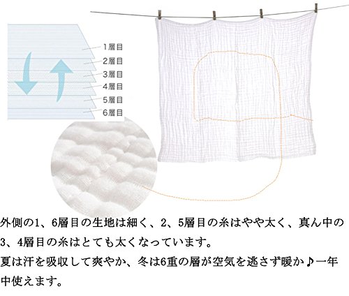 - 吸湿・発散性に優れたガーゼで夏はさらり。冬は6重の層が空気を逃さず暖か。一年中使えます。