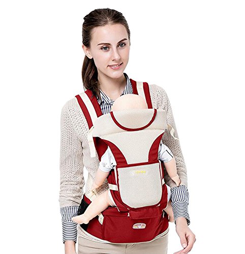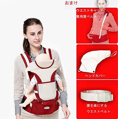 Happylifehere 抱っこ紐 ベビーキャリア 多機能 新生児 から 48ヶ月 まで おまけ ヘッドカバー 肩ベルト 腰ベルト 疲れにくい 夏 通気性良い TYPE-A ダークレッド