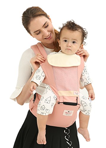 Happylifehere 抱っこひも ヒップシート ベビーキャリー 綿 3-36ヶ月 赤ちゃん ベビー 出産祝い 疲れにくい 腰ベルト よだれカバー 4way おんぶ紐 ピンク