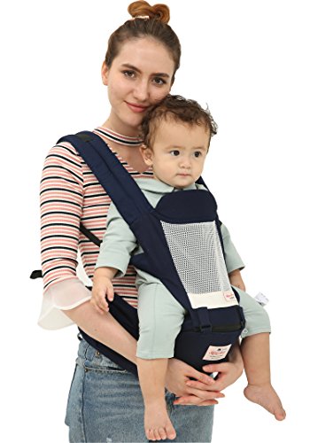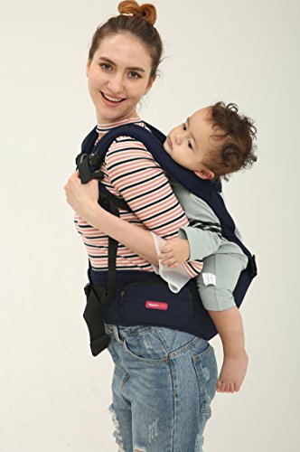 Happylifehere 抱っこひも ヒップシート ベビーキャリー 綿 3-36ヶ月 赤ちゃん ベビー 出産祝い 疲れにくい 腰ベルト よだれカバー 4way おんぶ紐 ダークブルー