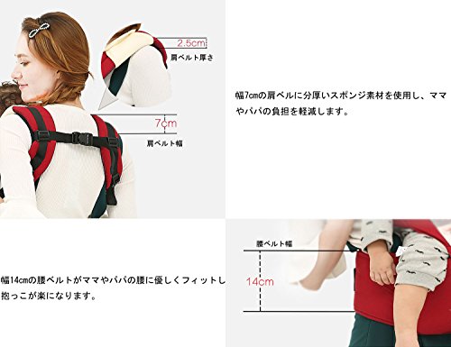 - 7.肌に優しいコットン素材でベビーの敏感な肌にも安心。 8..よだれカバーとよだパッド付き 赤ちゃんの柔らかい顔に傷がつかないようカバーとパッドしてくれ、いつも清潔に使用することができます。着け外しが簡単便利なスナップボタン仕様 9.メッシュ素材 通気性に優れており暑い夏でも快適に抱っこできます。 フロントはメッシュ素材を使用しているので、通気性に優れており背中の熱を逃がしてくれるので、夏の暑い日も、涼しく快適に過ごすことができます。 10.お腹にあたる部分はクッションが厚く入って、長時間でも疲れにくいです。 11.幅広ウエストベルトと二重のあんぜん保障システム。ベルトは長めのマジックテープとバックル留めの2重ロック式で安心。使用中に弛みが起こる心配なし。 12.シート単体のサイドには収納ポケットがあり、オムツやおしりふき、ハンカチ、お財布、携帯などはたっぷり入れます。