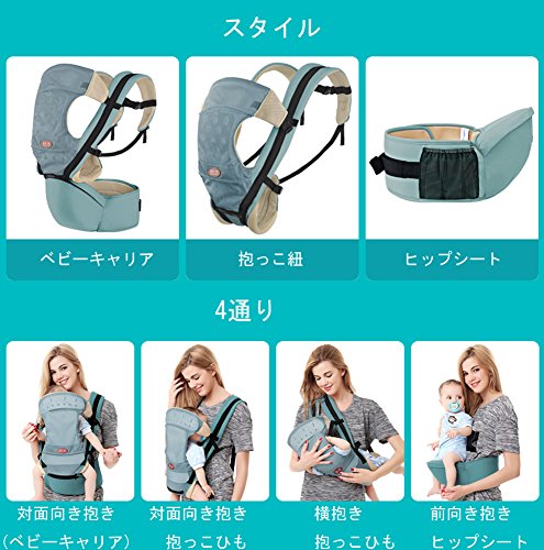 Happylifehere ベビーキャリア 抱っこひも ヒップシート おんぶ紐 赤ちゃん ベビー 新生児 バックサポート 疲れにくい 腰ベルト メッシュ 4way ダークブルー