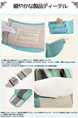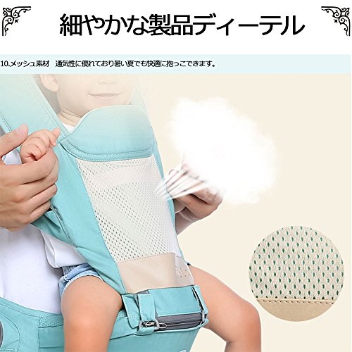 - 7.シート単体のサイドには収納ポケットがあり、オムツやおしりふき、ハンカチ、お財布、携帯(iPhone 7 Plusまで)などはたっぷり入れます。 8.安全に抱っこできるように角度がついています。お子様のお尻にかかる負担も軽減! 9.幅広ウエストベルトと二重の安全保障システム。ベルトは長めのマジックテープとバックル留めの2重ロック式で安心。使用中に弛みが起こる心配なし。 10.よだれをカバーとよだパッド付き 11.メッシュ素材 通気性に優れており暑い夏でも快適に抱っこできます。 ママが便利に使いやすい機能性はもちろん、赤ちゃんの快適性もしっかり考慮された製品がこの機会にぜひチェックして下さい。ママと赤ちゃんの二人が満足できる抱っこひもです。