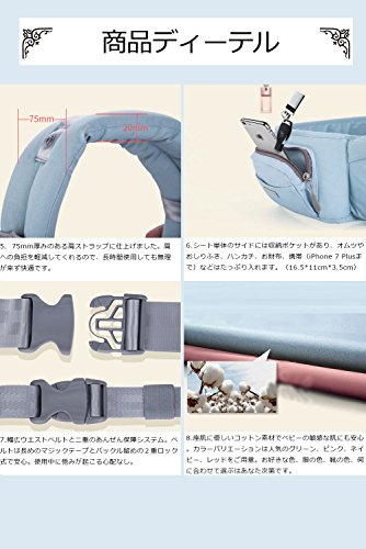 - 7.幅広ウエストベルトと二重のあんぜん保障システム。ベルトは長めのマジックテープとバックル留めの2重ロック式で安心。使用中に弛みが起こる心配なし。 8.肌に優しいコットン素材でベビーの敏感な肌にも安心。カラーバリエーションは人気のグリーン、ピンク、ネイビー、レッドをご用意。 9.お肌に優しいコットン素材でベビーの敏感な肌にも安心。スタイリッシュなフードは、強い日差しや紫外線、黄砂や埃など様々な物からお子様の頭部を守ってくれ、快適に眠ることができます。 10.通常にはフロントカバーを付けて使用し、暑い日はフロントカバーを外してご使用ください。風通りの良いメッシュ素材なので、背中を涼しく汗かきな赤ちゃんも快適に過ごすことが出来ます。 11.赤ちゃんの柔らかい顔に傷がつかないようカバーとパッドしてくれ、いつも清潔に使用することができます。着け外しが簡単便利なスナップボタン仕様 12.ヒップシート、ヒップシートキャリアの2つの機能が一つに合わさったALL IN ONEキャリアです。