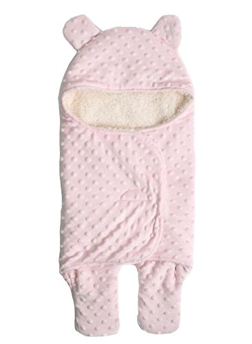 Happylifehere おくるみ 寝袋 スリーパー 赤ちゃん 新生児 ベビー 0-3歳 無地 フリース ブルー ピンク ホワイト (M, ピンク)