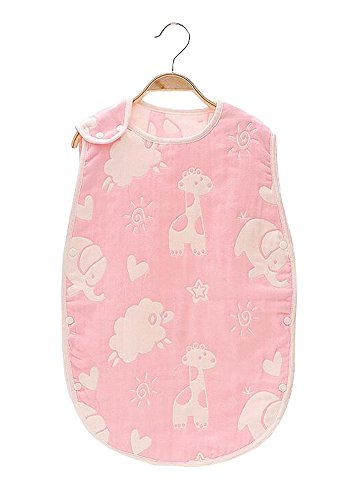 Happylifehere 6重がーぜ スリーパー 出産祝い 寝冷え対策 あかちゃん ベビー 0~36ヶ月 (L, アニマル(ピンク))