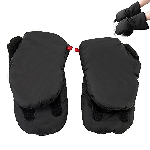 Happyyoo ベビーカー用 ハンドマフ 手袋 防寒 保温 防水 ふわふわ 冬用 自転車&ベビーカー用 2色選べる (ブラック)