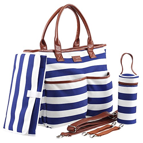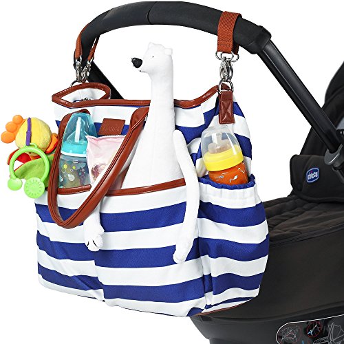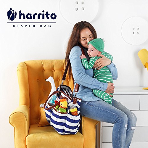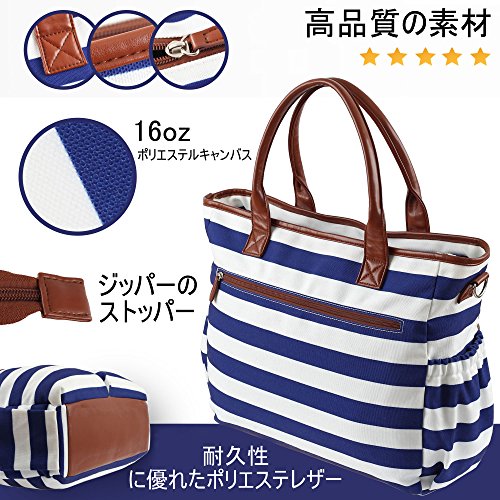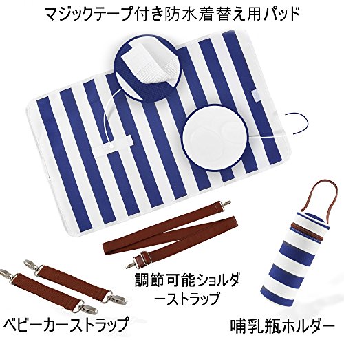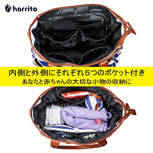 スタイリッシュ、快適で機能性抜群-赤ちゃんの親が持つべきバック Harritoおむつバッグは、おしゃれなデザイナーズバッグに見える機能性抜群のバッグで、若い親御さんにぴったりです。 クオリティーが高く、使いやすくて安心素材を使用-16ozポリエステルキャンバス、内側は210dポリエステルの縁取り、持ち手・ショルダーストラップなどは茶色のPuレザーを使用。 ダークブルーと白のストライプがスタイリッシュでおしゃれなデザイン。このおしゃれなおむつバッグは他にもおしゃれでたくさん容量が入るユニセックスのバックや、ビーチバッグ、旅行バッグとしても使用できます。見た目も使い勝手も優秀-Harritoはママやパパ、おじいちゃんおばあちゃん、お手伝いさんなど、誰でも使用できるようにこの理想のおむつバッグを制作しました。 Harritoおむつバッグは旅行先にも散歩にも、ベビーカーの有無に関わらず使用でき、ショッピングや知人の訪問など多岐にわたって使用可能。ベビーカーに取り付け可能な他、肩掛けも可能。車に置いておけば着替えパッドでいつでも快適におむつ替えが簡単にできます。 プ