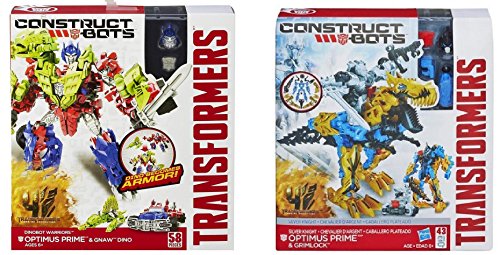 Transformers Construct Bots Set of 2: Silver Knight Optimus Prime/Grimlock & Prime/Gnaw