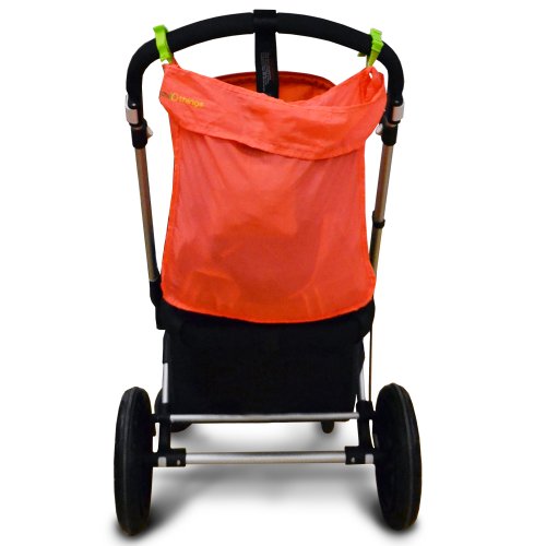 Max 10 pound each side;Clips onto front of frame to keep umbrella strollers standing;Self-storing pouch;Slip umbrella stroller handle into pocket in strap to keep bag from slipping down to ground;Clips at top for use on single-handled strollers like bugaboo, walkers, and shopping carts