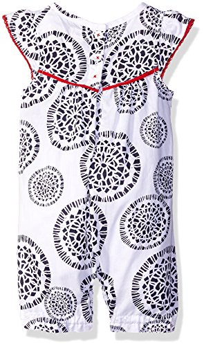 軽量綿カバーオールの特徴は目を引くオールオーバープリントが施されています。ラウンドネック。短いフラッタ袖になっています。コントラストのあるスカラップトリムで装飾は袖とフロントとバックヨーク。ストレートのショーツと内側脚スナップので簡単に着ることができます。100 %コットンを使用しています。洗濯機の寒さ、乾燥機のご使用はお控えください。インポートされました。