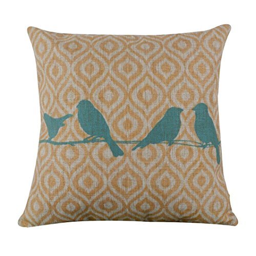- Hatop 18 x 18 inches Forest Blue Bird Yellow Ikat Geometry Burlap Pillow Cover