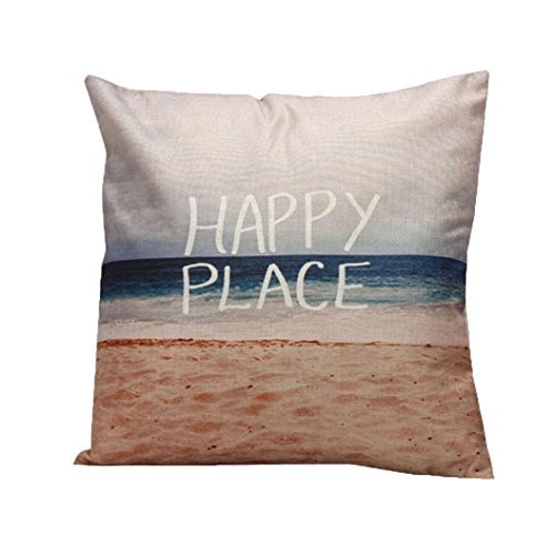 - Hatop 18 x 18 inches Linen blend Ocean Theme My Happy Place Beach Sea Throw Pillow