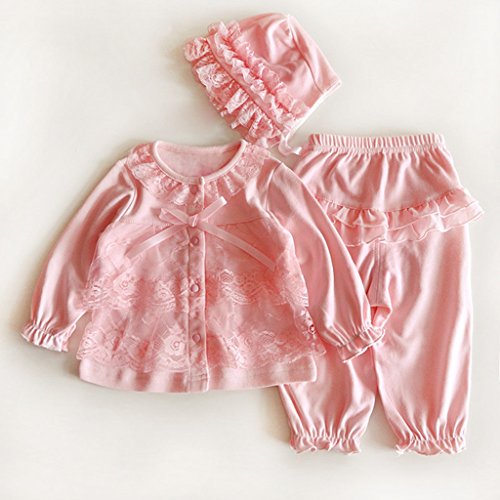 hatop新生児幼児赤ちゃん女の子服レースカーディガン+ロングパンツ+キャップ帽子セットOutfit カラー: ピンク