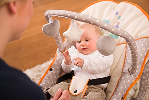 Suitable from birth;Three position seat;Removable toy bar;Softly padded;Three point harness