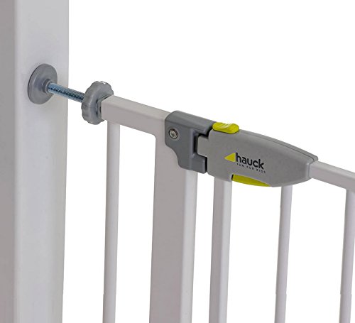 The Hauck Squeeze Handle Safety Gate is made of powder-coated steel. It offers child-friendly safety at home. The gate can be clamped by pressure mounting between walls or door frames. Drilling and bolting is not necessary. This safety gate is suitable for widths from 75 - 81 cm. The gate has a manual, double locking mechanism. It can be opened with one hand and locks reliably into a childproof closure.