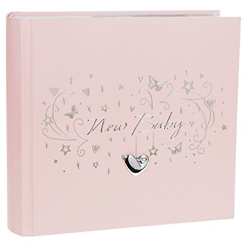 Gorgeous pink hard back photo album to show photos of your newborn baby girl from Haysom Interiors.;The front cover has a silver plated heart and star cluster decoration.;A thoughtful and lovely present for a new born baby girl;The album holds 80 slip in 4 x 6 photos with note space to write captions.;Overall album measures approximately 7 x 7.5.