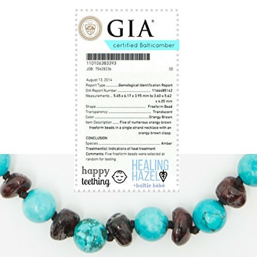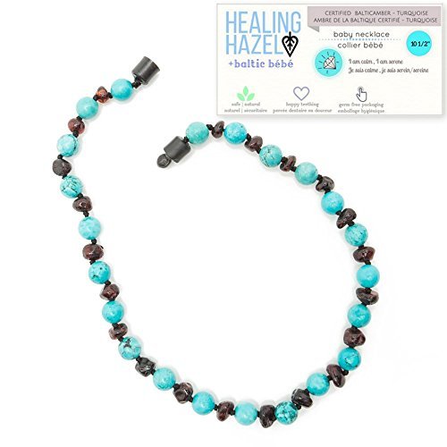 100% Certified Balticamber Pop Clasp Baby Necklace with Gemstones, Turquoise, 10 1/2'' by Healing Hazel