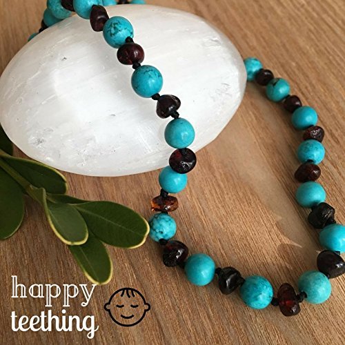 - 100% Certified Balticamber Pop Clasp Baby Necklace with Gemstones, Turquoise, 10 1/2''