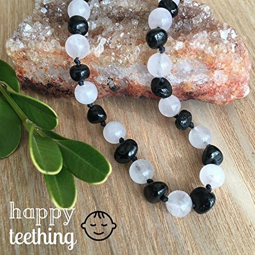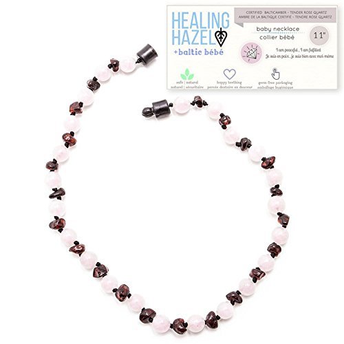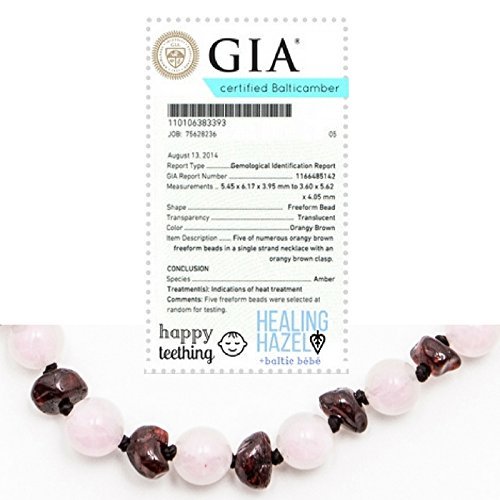 - Baltic Amber Baby Teething Necklace - Pop Clasp, Rose Quartz With Gemstones, 11 - Reduce Drooling And Teething Pain For Babies - 100% Certified Baltic Amber By Healing Hazel