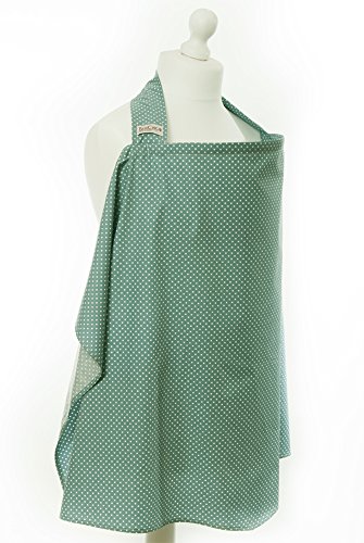 BebeChic *100% Cotton* Breastfeeding Cover *105cm x 69cm* - with drawstring Storage Bag - Boned Nursing Apron - wild thyme / white dot