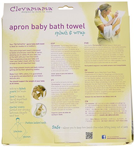 The original and multi-award winning Clevamama? Splash & Wrap Baby Bath Towel is ideal for newborns to toddlers. The largest towel of its kind, it is designed to fasten around your neck like an apron allowing you to safely pick your baby up from the bath with two free hands. Completely wrap your baby and cover your baby's head with the hood to keep in the all-important heat. This extra large towel also helps prevent mum or dad's clothes getting wet by their splashing toddler! Made from 100% cotton, it is guaranteed to be gentle and absorbent on baby's delicate skin.