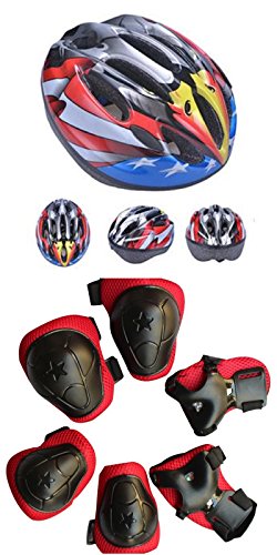 (ハーツクライ) Heart's Cry 軽量 サイクリング 自転車 用 ヘルメット キッズ ジュニア 子供 用 ダイヤル アジャスター 付き (プロテクター付き(星条旗))