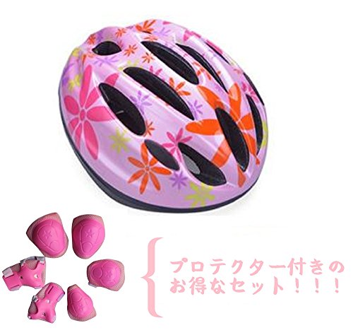 (ハーツクライ) Heart's Cry 軽量 サイクリング 自転車 用 ヘルメット キッズ ジュニア 子供 用 ダイヤル アジャスター 付き (プロテクター付き(ベールピンク))