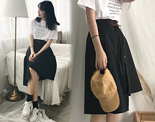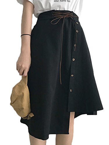 Heaven Days(ヘブンデイズ) アシンメトリースカート スカート Aライン レトロ ウエストゴム ボタン装飾 ハイウエスト レディース 1804D0524