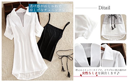 Heaven Days(ヘブンデイズ) [キャミソールセット]半袖 シフォン シャツ チュニック Vネック 無地 レディース 1605B0430