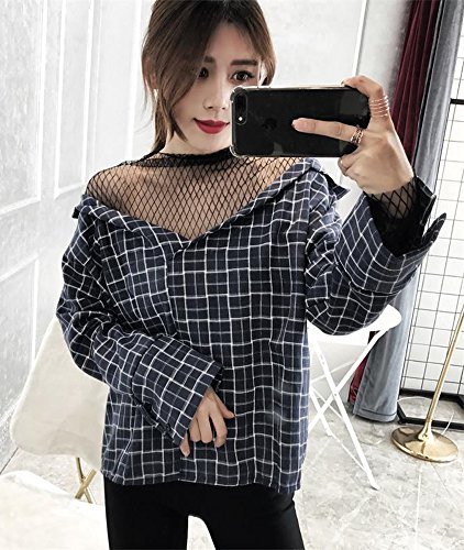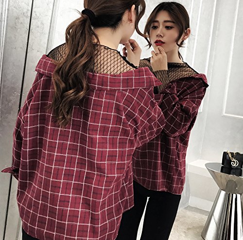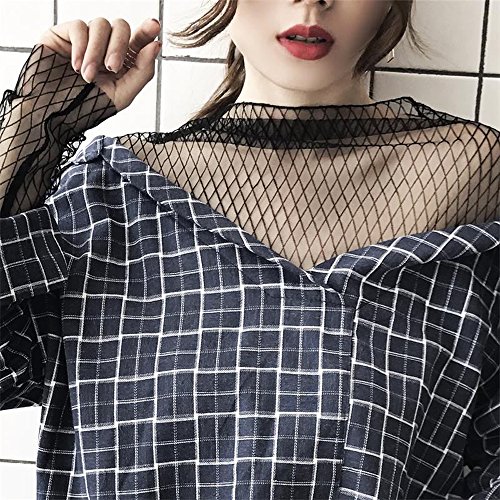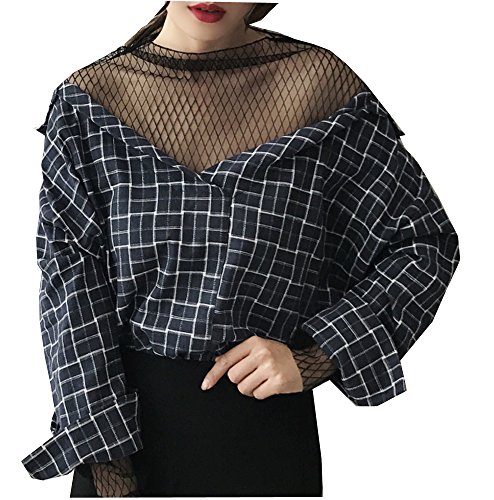 Heaven Days(ヘブンデイズ)長袖 シャツ ブラウス オーバーサイズ Vネック 抜き襟 チェック オフショルダー レディース 1704E0200