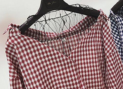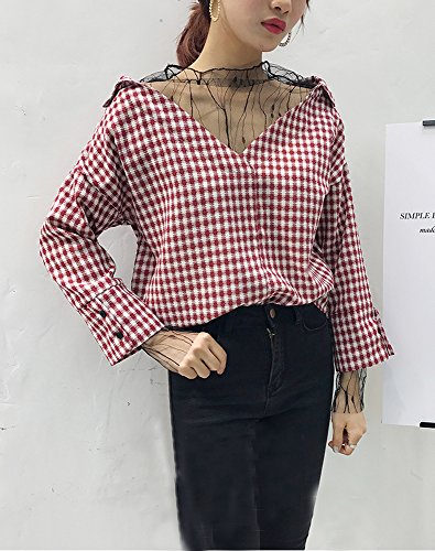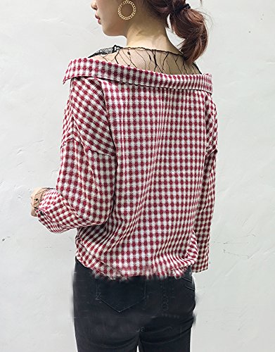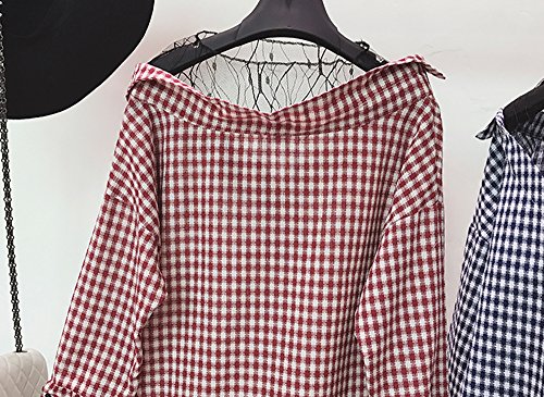 Heaven Days(ヘブンデイズ)長袖 シャツ ブラウス オーバーサイズ Vネック 抜き襟 チェック オフショルダー レディース 1704E0203