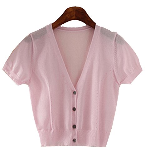 Heaven Days(ヘブンデイズ) カーディガン ニット サマーニット ショート丈 Vネック 薄手 透け シンプル 無地 半袖 レディース 1708G0045