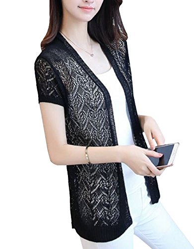 Heaven Days(ヘブンデイズ) カーディガン ニット レース編み 薄手 透け シンプル 半袖 レディース 1708G0155