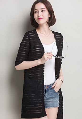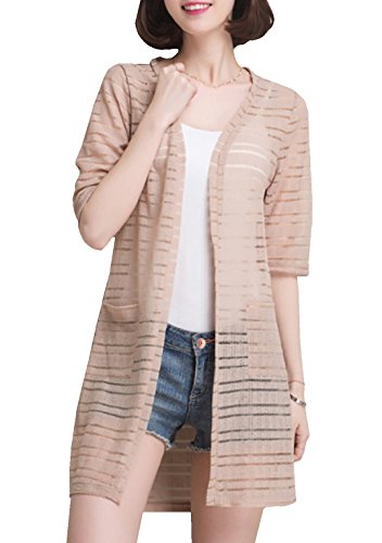 Heaven Days(ヘブンデイズ) カーディガン ロング ボーダー 薄手 透け シンプル 五分袖 レディース 1708G0199