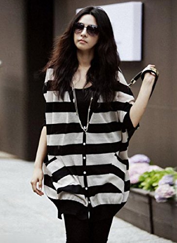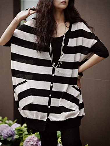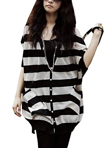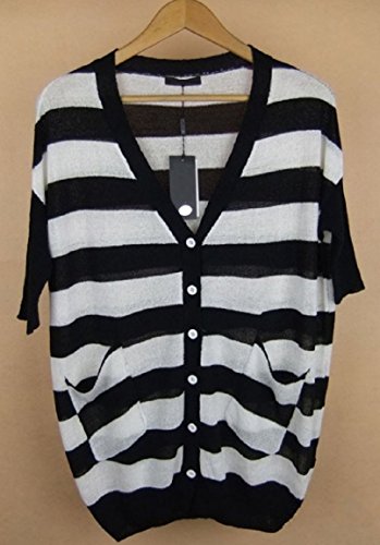 Heaven Days(ヘブンデイズ) カーディガン ニット ボーダー Vネック ゆるシルエット シンプル 五分袖 レディース 1708G0215