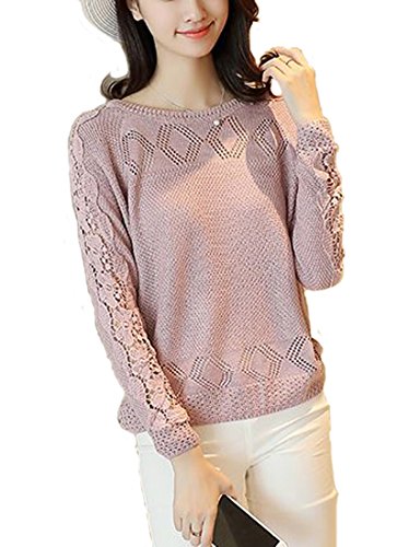 - 着るだけで女子力アップ確実!透け感のある優しいレース編みをあしらったプルオーバーニットです♪