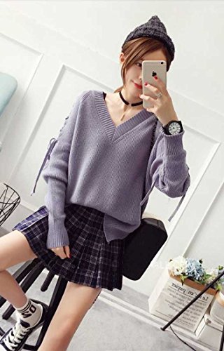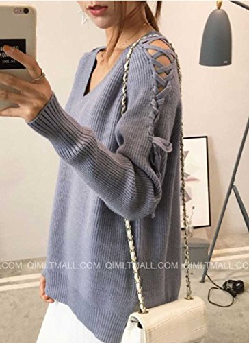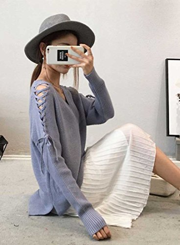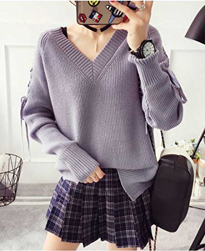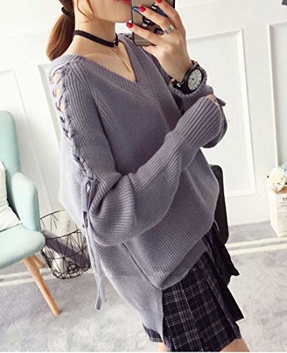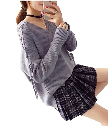 - 着るだけで女子力アップ確実!袖にあしらったレースアップがトレンドを感じるVネックセーターです♪