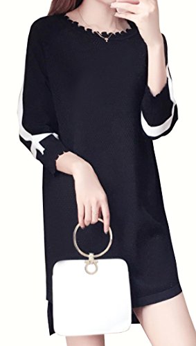 Heaven Days(ヘブンデイズ) ワンピース 7分袖 穴あきメッシュニット 袖ライン 前後丈違い レディース 1710N0193
