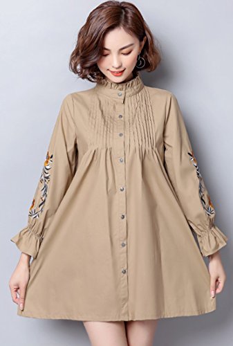 - 襟と袖口にフリルが付いて、腕には花柄の刺繍入りでとても可愛いしきれいめシャツです☆