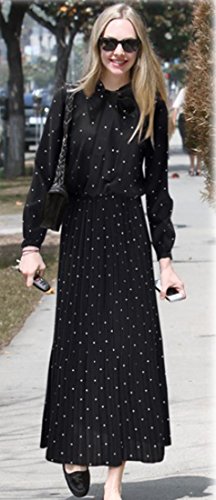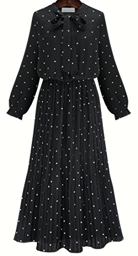 Heaven Days(ヘブンデイズ) ワンピース ドット柄 ボウタイ プリーツスカート 長袖 ロング丈 レディース 1710N0369