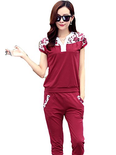 - スポーツ、エクササイズやちょっとした外出にも着まわせちゃうセットアップ♪半袖と七分丈 クロップドパンツの組み合わせです。