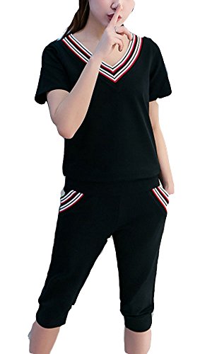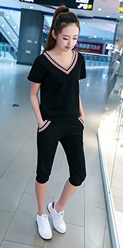 - スポーツ、エクササイズやちょっとした外出にも着まわせちゃうセットアップ♪半袖と七分丈 クロップドパンツの組み合わせです。