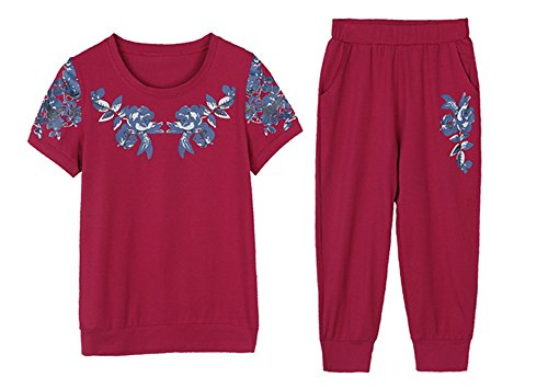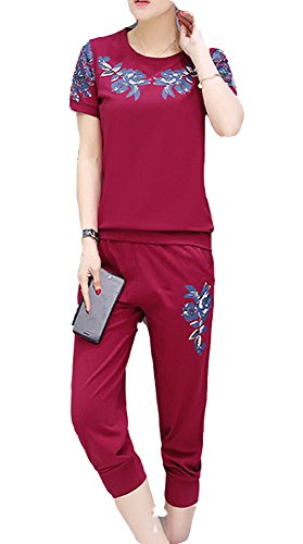 - スポーツ、エクササイズやちょっとした外出にも着まわせちゃうセットアップ♪半袖と七分丈 クロップドパンツの組み合わせです。