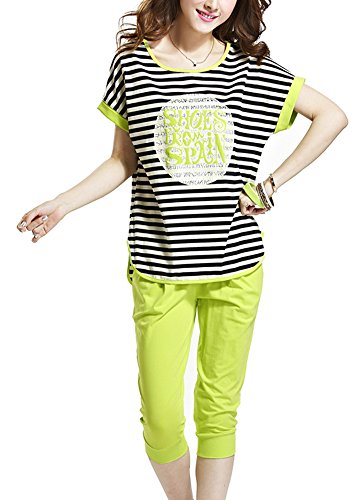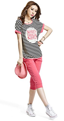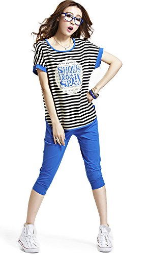 - スポーツ、エクササイズやちょっとした外出にも着まわせちゃうセットアップ♪半袖と七分丈 クロップドパンツの組み合わせです。