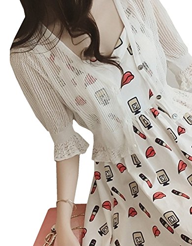 Heaven Days(ヘブンデイズ) カーディガン ニット ショート丈 Vネック レース編み 薄手 透け シンプル 五分袖 レディース 1708G0100