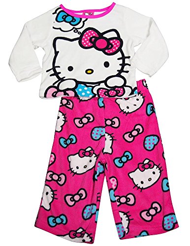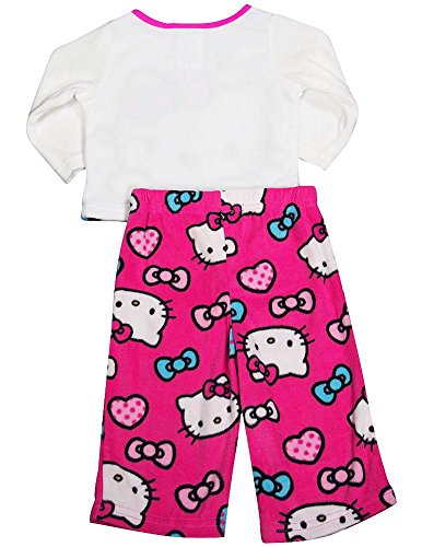 HELLO KITTY – 女児長袖Hello Kittyパジャマ,ホワイト,ピンク,フリース,クルーネック,腰周りゴム入りパンツ、耐炎, 100 %ポリエステル,カンボジア製、38187 38 – 187