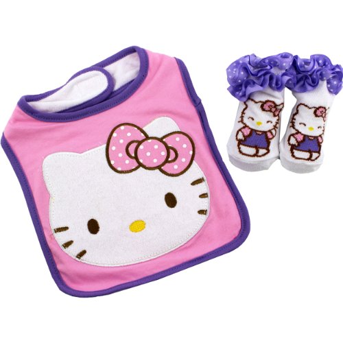 Hello Kitty Big Face Pink Infant Bib & Bootie Socks Set O/S by Hello Kitty