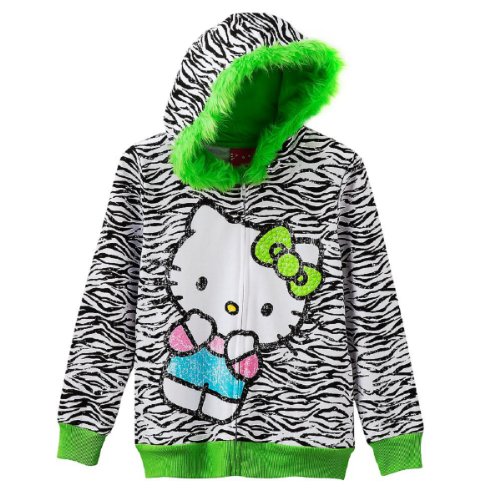 製造元:ゼブラストライプからカジュアルルックを彼女に与える場合は、スタッドとフェイクファーのトリムでこの女の子のHELLO KITTYパーカー傑出したスタイル。のホワイト/ブラック/ネオングリーン。
