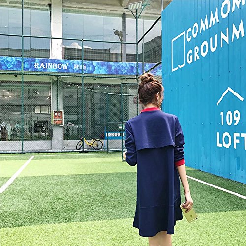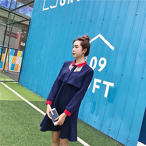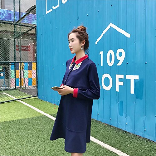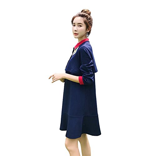 HelloGO 授乳服 マタニティウェア 授乳ワンピース 長袖 授乳付き おしゃれに着こなせるゆったりワンピース 秋 春 用 ネイビーL